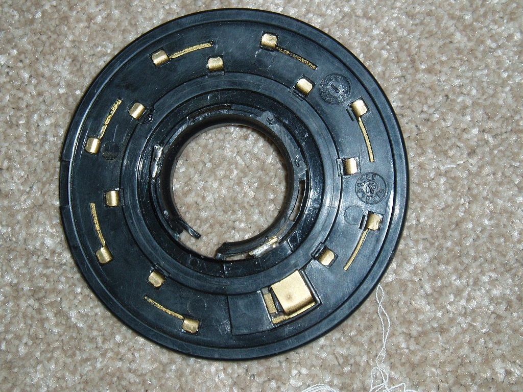 I dismantle the airbag spiral assembly and remove the horn ring/indicator cancel ring.