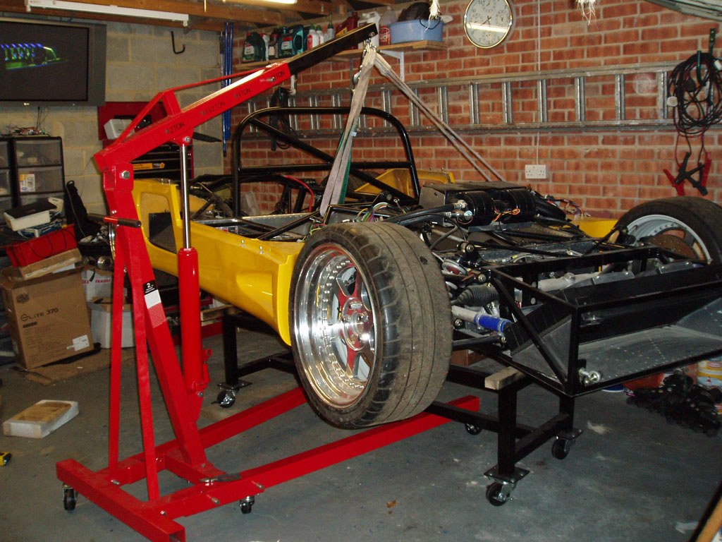 The rolling chassis was lifted onto the dolly using my recently purchased engine hoist.